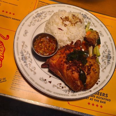 (GF) Sudanese specialty fried chicken with galangal crumb and Sambal bawang.